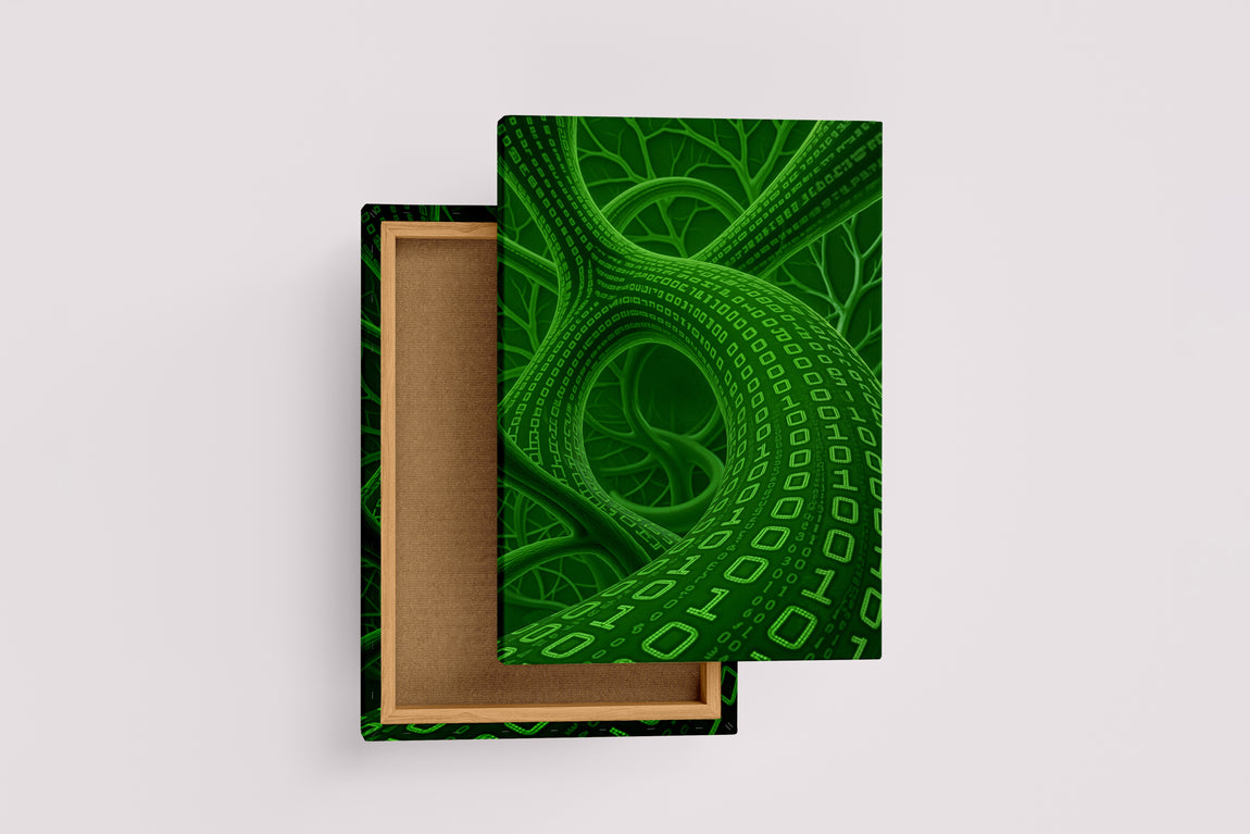 Modern dijital sanatın en çarpıcı ve en düşündürücü örneklerinden biri olan bu eser, şimdi doğanın organik formları ile dijital çağın temel dili olan binary kodu birleştiren o eşsiz estetiği mekanlarınıza taşımak için kanvas tablo formunda. Bu tablo, sadece soyut bir desen değil, aynı zamanda günümüz dünyasının görünmez altyapısını – yani veri akışını, ağları ve dijital ekosistemleri – sanatsal bir dille yorumlayan, felsefi ve kavramsal bir başyapıttır.