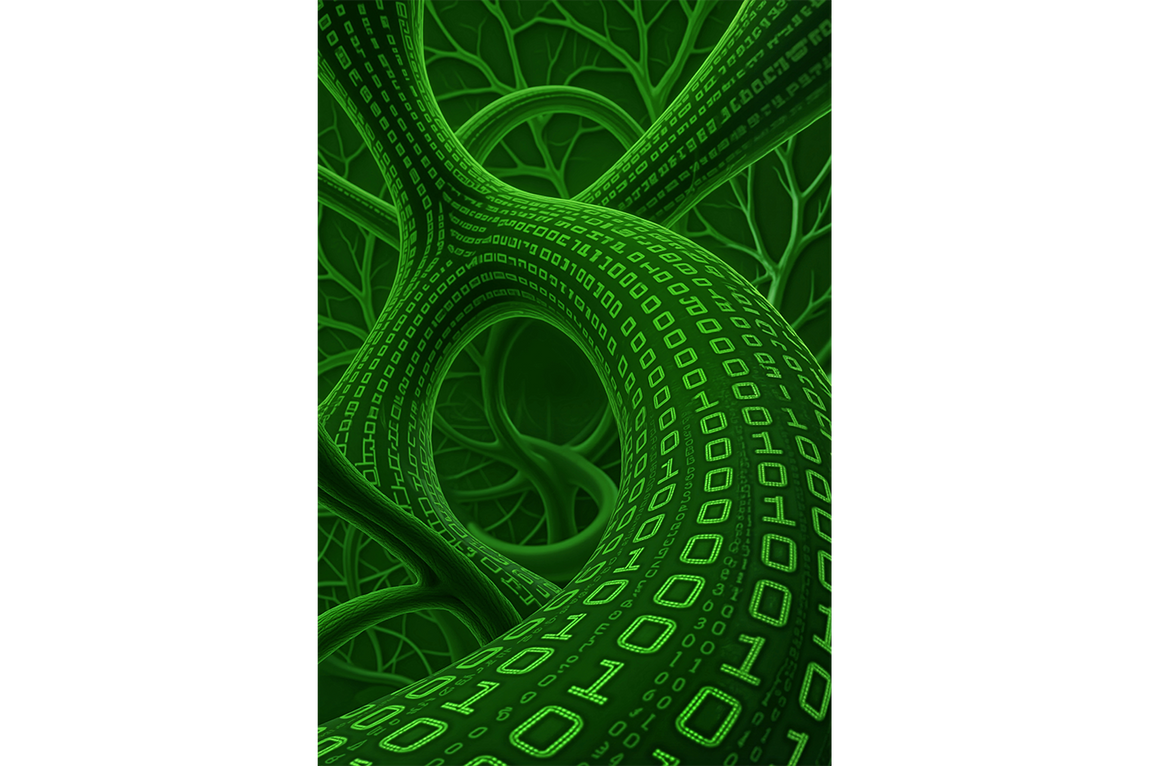 Bu eser, izleyiciyi bir ağacın köklerini, bir yaprağın damarlarını veya biyolojik bir sinir ağını anımsatan, birbiriyle iç içe geçmiş organik bir yapının içine davet eder. Ancak bu damarlarda akan, kan veya su değil, dijital dünyanın temelini oluşturan 0'lar ve 1'lerdir. Sanatçı, bu çarpıcı birleşimle, teknolojinin artık hayatımızın ne kadar organik ve ayrılmaz bir parçası haline geldiğini görselleştirir. İnternet, sosyal ağlar ve sürekli veri akışı, artık doğanın kendisi gibi, etrafımızı saran, bizi besleyen ve birbirimize bağlayan yeni bir ekosistemdir. Bu tablo, bu yeni "dijital doğanın" hem karmaşıklığını hem de o gizemli güzelliğini gözler önüne serer.