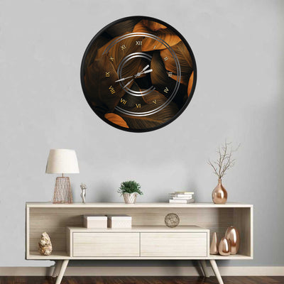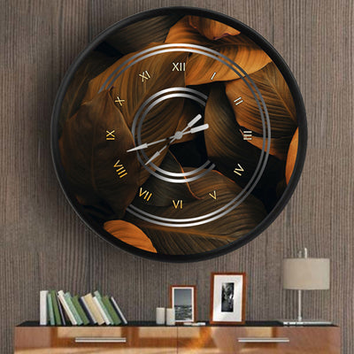 toprak tonlarında büyük tropik yapraklar, MDF duvar saati