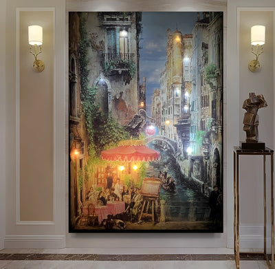 Venedikte Bir Gece – Uzaktan Kumandalı LED Işıklı Kanvas Tablo