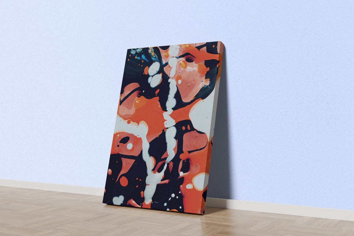 Canlı turuncu ve beyaz boya sıçramalarının karanlık bir zeminde buluştuğu bu baskı, mekana enerjik ve modern bir hava katıyor. Dinamik renk geçişleri ve soyut çizgiler, mekanınıza estetik bir derinlik kazandırırken, kaliteli baskı yüzeyi detayları net ve uzun ömürlü sunar. Sanatseverler için göz alıcı bir tercih.