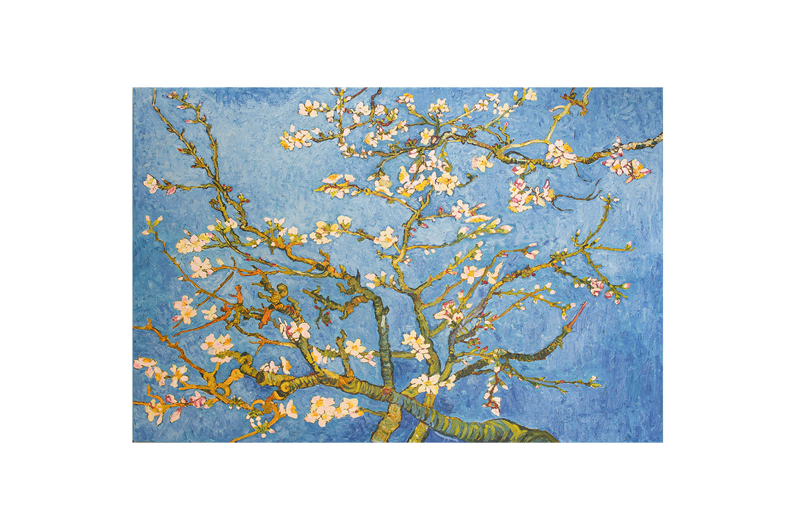 "Badem Çiçekleri" kanvas tablosu, post-empresyonist akımın en güzel örneklerinden biridir. Van Gogh'un kendine has fırça darbeleri, renkleri cesurca kullanışı ve Japon sanatından (Japonizm) aldığı ilhamla ortaya koyduğu bu kompozisyon, her mekana anında sanatsal bir derinlik kazandırır. Tablonun hakim rengi olan gök mavisi, bulunduğu ortama ferahlık ve sakinlik hissi verir. Beyaz ve hafif pembe tonlarındaki çiçekler ise mekana zarafet ve aydınlık bir dokunuş ekler. Modern, minimalist, klasik veya bohem tarzdaki tüm dekorasyon stilleriyle mükemmel bir uyum sağlar.