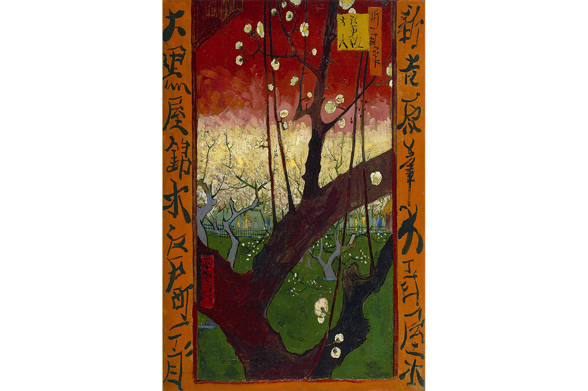 Van Gogh’un bu eseri, Japon estetiğini Batı sanatına uyarlama konusundaki ustalığını sergiler. Özellikle yoğun kırmızı fonun üzerinde açan beyaz erik çiçekleri, doğanın dinginliğini ve baharın enerjisini vurgulamaktadır. Sanatçı burada hem doğaya olan hayranlığını hem de Japon kültürüne duyduğu ilgiyi izleyiciye aktarmaktadır. Her fırça darbesinde detaylara gösterilen özen, bu tabloyu dekoratif bir unsur olmanın ötesinde, duygusal bir yolculuk haline getirir.
