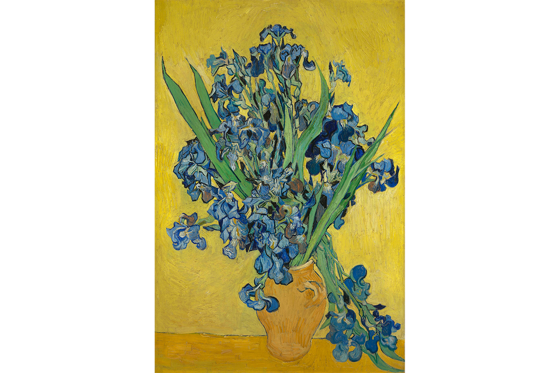Vincent van Gogh’un eşsiz sanat anlayışını yansıtan “İrisler” adlı eseri, canlı renkleri ve güçlü fırça darbeleriyle sanat tarihinin en dikkat çekici natürmort çalışmalarından biridir. Sanatçının doğaya olan hayranlığını ve duygusal yoğunluğunu aktardığı bu tablo, çiçeklerin zarafetini güçlü bir estetikle birleştirir. Sarı arka plan üzerinde konumlandırılmış mavi irisler, renk kontrastı sayesinde göz alıcı bir etki bırakır. Tablo, hem dinamizmi hem de dinginliği bir arada sunarak izleyiciye derin bir görsel deneyim yaşatır.
