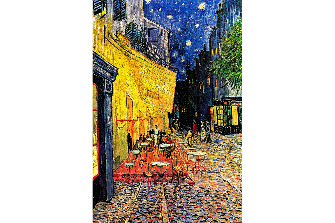 Vincent van Gogh’un 1888 yılında Arles’de resmettiği “Yıldızlı Gece Altında Kafe Terası”, sanatçının en ikonik eserlerinden biridir. Van Gogh, bu tabloda gündelik yaşamın huzurlu bir sahnesini, gökyüzündeki büyüleyici yıldızlarla buluşturarak eşsiz bir atmosfer sunmuştur. Canlı sarı ve mavi tonların kontrastı, tablonun hem romantik hem de enerjik bir his uyandırmasına katkı sağlar. Bu eser, sanatçının hem renklerle olan güçlü bağını hem de mekânları duygusal bir derinlikle betimleme becerisini gözler önüne serer.