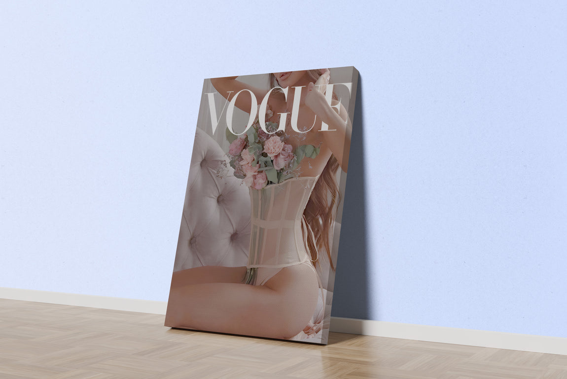 Modern romantizmi ve feminen zarafeti, yüksek modanın sofistike diliyle buluşturan bu büyüleyici kanvas tablo, mekanlarınıza incelikli ve rüya gibi bir dokunuş katmak için tasarlandı. Vogue estetiğiyle taçlandırılan bu eser, bir korse ve taze çiçek buketinin bir araya geldiği kompozisyonuyla, kadınlığın hem güçlü hem de naif yönlerini kutlayan sanatsal bir başyapıttır. Yumuşak pastel tonların ve ahenkli bir ışığın hakim olduğu bu tablo, duvarlarınızda sadece bir dekorasyon objesi değil, aynı zamanda huzur ve zarafet dolu bir atmosferin anahtarı olacaktır.