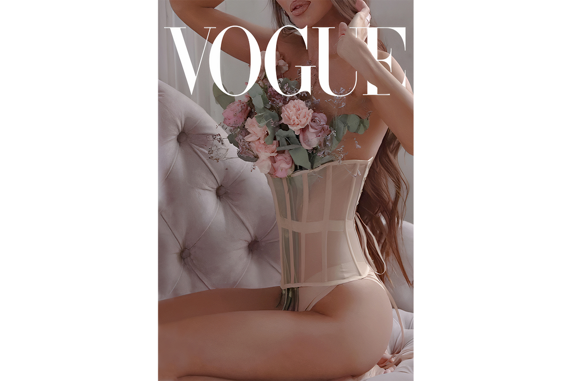 - Vogue Konsepti: Kompozisyonun bir Vogue kapağı olarak sunulması, esere anında bir moda otoritesi ve sofistike bir kimlik kazandırır. Bu tercih, eseri basit bir portreden çıkarıp, onu günümüzün güzellik ve stil anlayışını yansıtan bir moda beyanına dönüştürür.