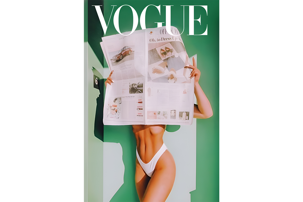 Bu eser, izleyiciyi bir moda dergisinin kapağına veya bir reklam kampanyasının setine götürür. Kompozisyonun merkezinde, kusursuz fiziğiyle modern güzellik standartlarını yansıtan bir kadın figürü yer alır. Ancak bu eseri sıradanlıktan çıkaran ve ona entelektüel bir derinlik katan şey, kadının yüzünün, yine bir moda yayın organı olan bir gazete ile tamamen gizlenmiş olmasıdır. Bu, modern çağın bir paradoksuna işaret eder: Görüntünün ve markaların bu kadar ön planda olduğu bir dünyada, bireysel kimlik bu imgelerin arkasında kayboluyor mu? Bu gizemli ve isimsiz figür, izleyicinin kendi stil ve güzellik ideallerini üzerine yansıtabileceği, evrensel bir ikona dönüşür.