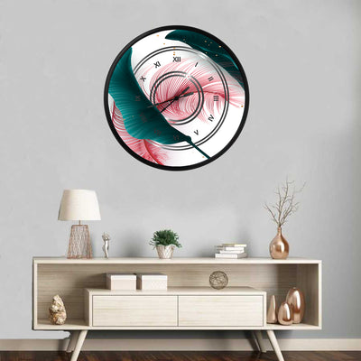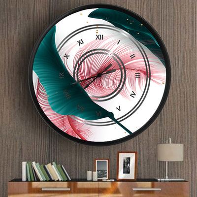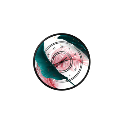 zümrüt yeşili yaprak ve kırmızı tüyler, MDF duvar saati